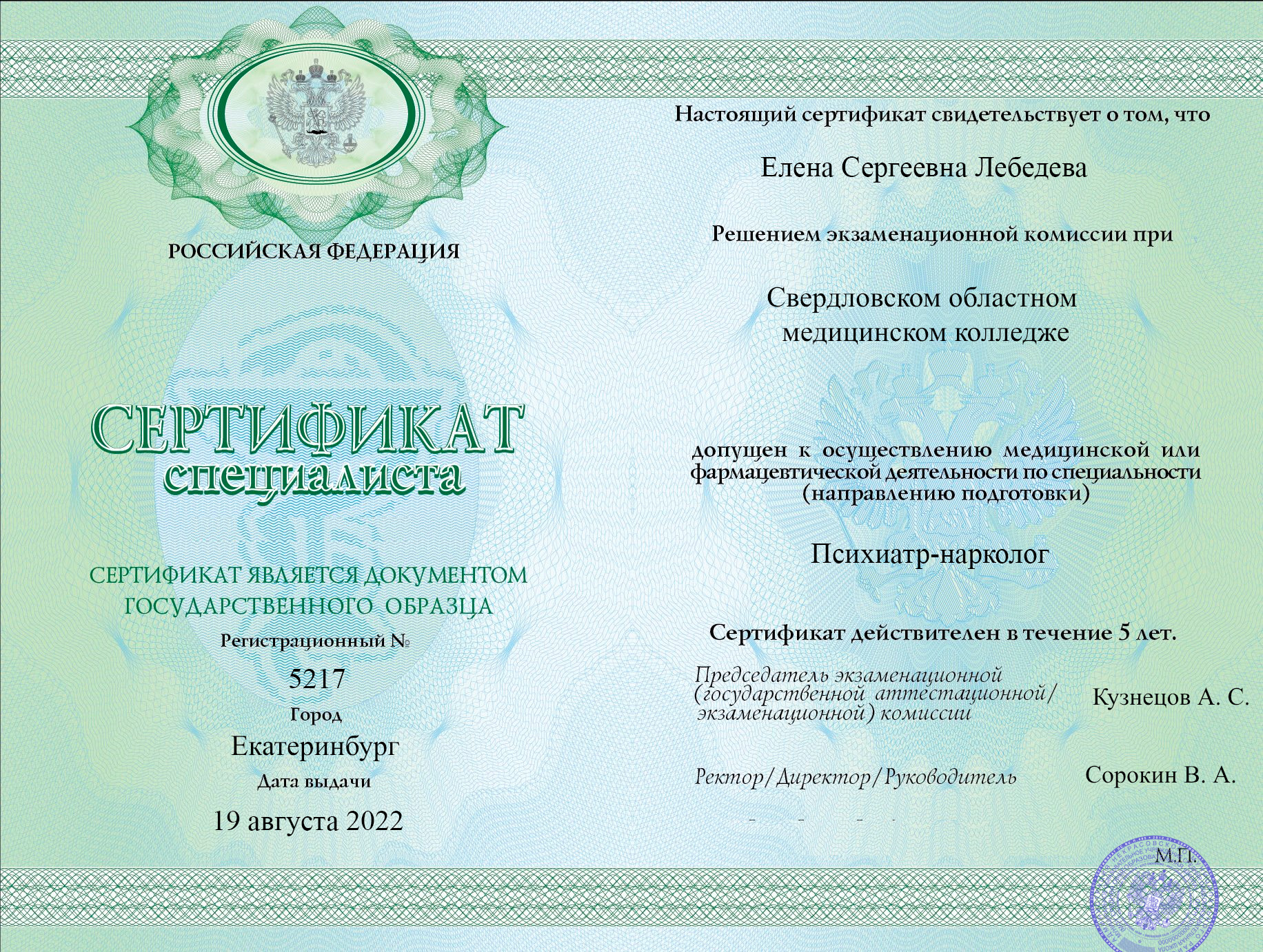 Елена Сергеевна Лебедева врач нарколог клиники доктора Стукаловой в Сыктывкаре
